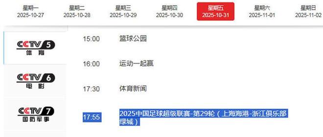 CCTV5直播海港对阵浙江!陶强龙PK刘若凡要害PK李